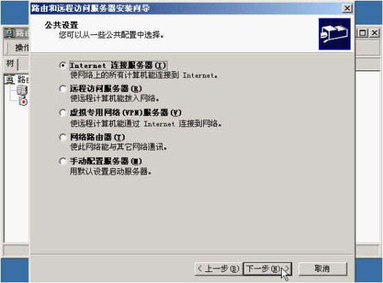 3、选"Internet连接服务器",让内网主机可以通过这台服务器访问Internet.