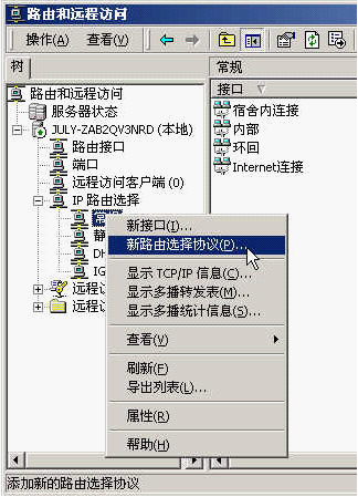 1、添加NAT协议。右击"常规",-》"新路由选择协议"