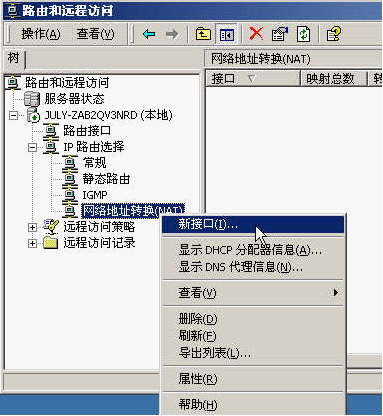 (最好先配置好NAT共享,让内网主机可以正常上网,不然的话,配好端口映射后再来配置NAT共享就有点麻烦了,弄的不好NAT还共享不了。)