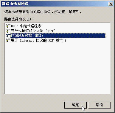 2、在"新路由选择协议"中选择"网络地址转换(NAT)",点击"确定"